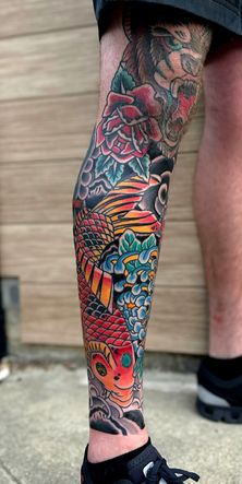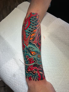 Known for bold lines, vibrant colors, and symbolic imagery including but not limited to koi fish, dragons, and cherry blossoms, this style emphasizes flowing compositions inspired by Japanese art and culture.
